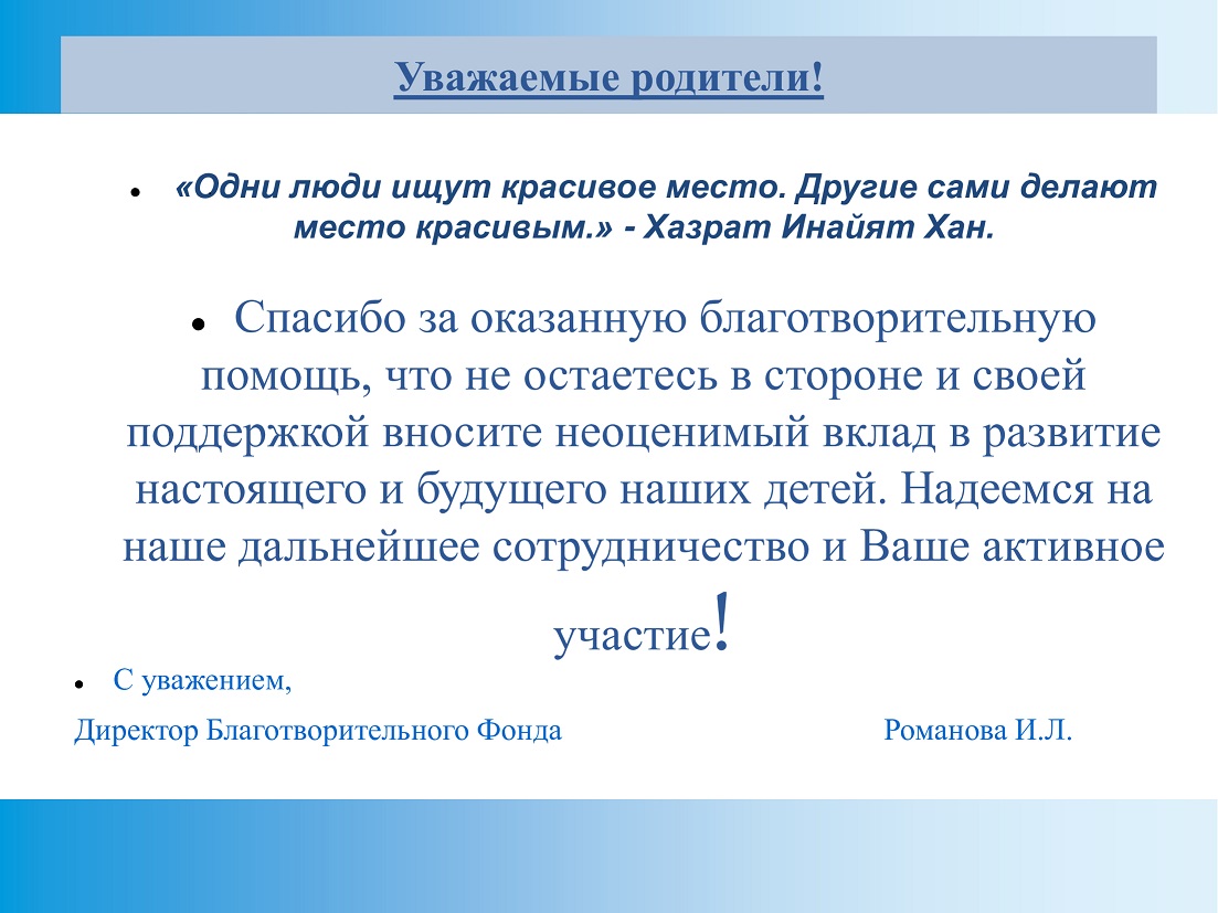 Благодарность родителям!