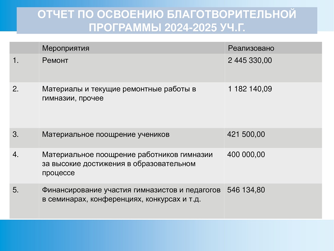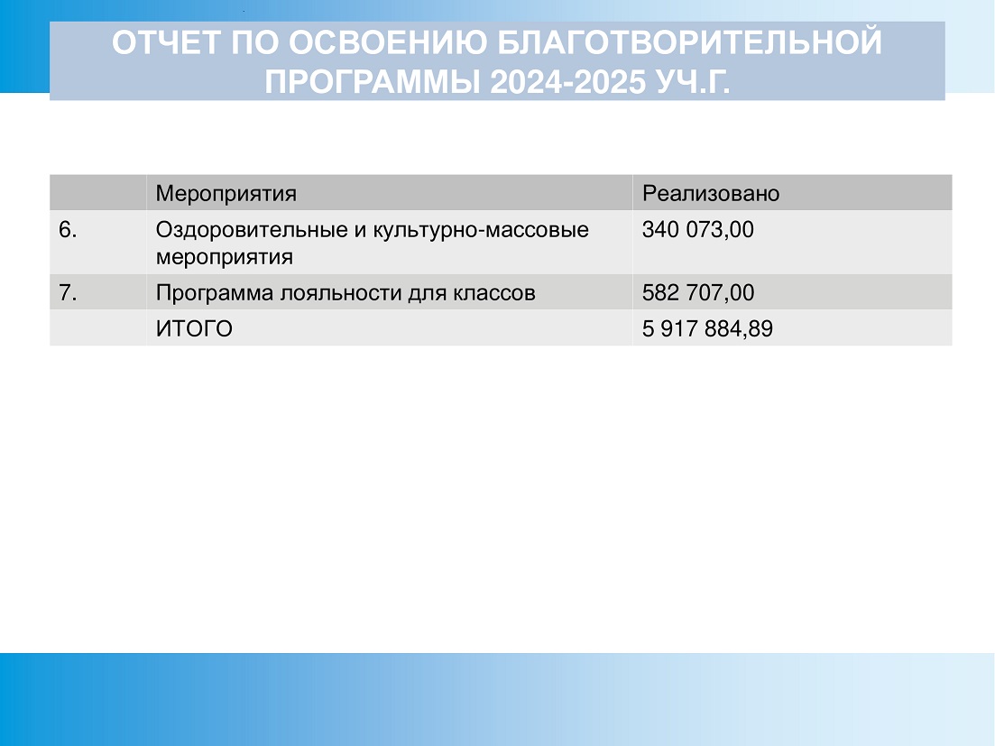 Отчет фонда по освоению благотворительной программы на 2024-2025 уч.г.